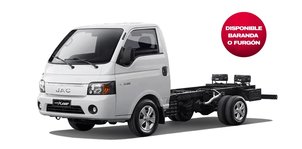 Precio corresponde versión X200 SIN A/C CHASIS CABINADO 2025 . Válido para compras y/o reservas del 1 hasta el 31 de enero de 2025 y/o hasta agotar stock de una (1) unidad por modelo. Las imágenes y características son referenciales y pueden variar según versión escogida. Precios expresados en dólares americanos, precio en soles calculado con T.C. de S/ 3.78. Aplican T&C: www.jac.pe/legales-promociones
